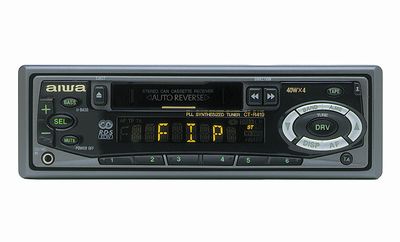 Après quelques recherches dans les magasins d'autoradio, je me suis aperçu que tous les modèles de la marque AIWA possèdent en façade une prise MiniJack identique à celles que l'on retrouve sur les enceintes de PC, qui lorsqu'elle est activée bascule automatiquement l'autoradio sur cette source. J'ai payé le mien, un 4x40 watts, RDS, assez frime, le modèle CT-R419, 690 francs chez Darty.
