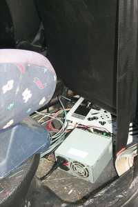 Ne rigolez pas ! Y'a pas mal de bidouilleurs qui ont juste posé un PC entier dans le coffre de leur voiture, qui ont branché un mini pavé numérique de caissière à la place du vrai clavier, avec une rallonge, qui lancent Windows et Winamp avec le plugin pour clavier numérique, et qui commande le tout en avaugle. Certains ont un listing avec le numéro de tous les morceaux à bord et se débrouillent très bien avec !