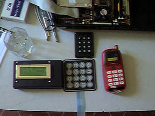 Très solide, assez laid. Celui que j'ai est le même que celui utilisé par Cajun (voir les photos sur leur site). Acheté 39 francs dans une boutique d'électronique. On peut en trouver de semblables très facilement un peu partout. A l'arrière de l'écran, 7 pines sur lesquelle on branche un connecteur permettant de faire une nappe. Il en faut deux (3 francs pièce) en tout. Je n'ai pas encore fait le cablage mais j'ai testé quelques touches avec le soft de Cajun, en reliant juste deux pines de l'écran sur deux pines du LCD, ça fonctionne bien. Les photos sont un peu floues, dommage...