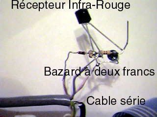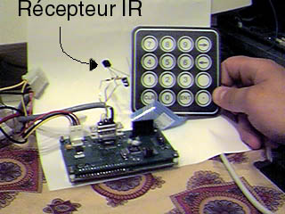 Patrice a réalisé un bricolage pour pouvoir utiliser uen télécommande programmable à la place d'un clavier. Plus d'infos bientôt ! Ce que je sais : le récepteur IR ne peut pas utiliser le même port série que l'écran LCD.