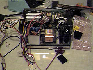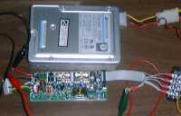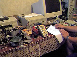 Et bien, Grace à l'aide de Patrice, un pote qui participe au projet MP3sb, nous avons mesuré quelques éléments : Carte Mères et Disques Durs. Nous les avons alimentés avec l'alimentation DC/DC que Patrice a déja bricolée (voir plus loin).