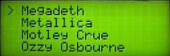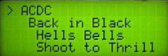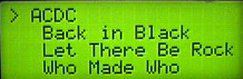 Le menu de choix des morceaux. Il s'agit d'une structure arborescente. Ici, les groupes...