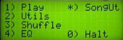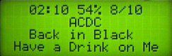 L'écran qui apparait pendant la lecture. Ici on peut passer au morceau suivant/précédent, faire pause, repeat, règler le volume, stopper, ajouter ce morceau dans la hotliste, etc... Sans arrêter le morceau on peut passer sur les autres menus...