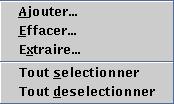 Comme la table est sélectionnable par ligne, notre winzip implémente des fonctions correspondant au menu Action suivant: