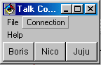 De la même facon que dans le programme de Talk, la communication se fait par l'intermédiaire de la classe Dispatcher et une classe Serveur qui descend de ConnexionServeur est à l'écoute d'une nouvelle connexion.