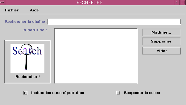 Un excellent projet. Permet aisément de rechercher dans une hiérarchie de répertoires les fichiers contenant une chaîne de caractère particulière (expressions régulières supportées). Les fichiers à prendre en compte peuvent être filtrés enfonction de leur suffixe.