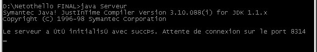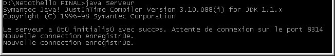 1) Dans un premier temps, il faut lancer le serveur , il prendra par défaut le port 8314 soit: " >java Serveur "