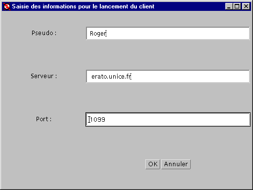 Ensuite, la seule chose à faire est de lancer le client : javac StartClient qui propose l'interface graphique suivante :