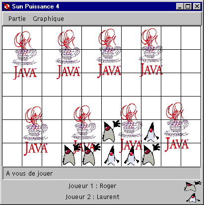 Un thème permet de changer l'image de fond de l'écran ainsi que les pions des joueurs. Voici par exemple le thème Java :
