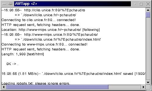 Fenetre de redirection de la sortie standard de Wget
