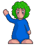 C'est une petite bestiole aux cheveux vert, rigolote,