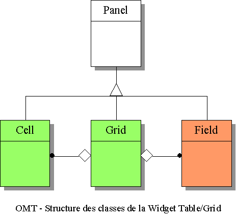 L'étude de notre Widget Table/Grid peut être décomposée en trois phases, à savoir le contrôle des caractéristiques graphiques propres à la Grid, la gestion des intéractions offertes à l'utilisateur et l'interface publique proposée aux programmeurs.
