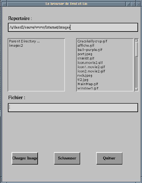 Notre browser permet de charger des images provenant d'une url ( donc a distance ). Pour le schnauzer, les images sont affichees apres leur chargement, elles s'affichent donc toutes en meme temps ( et non l'une apres l'autre ). Nous pouvons egalement ouvrir plusieurs images en meme temps ( XV est oblige d'effacer l'ancienne pour afficher la nouvelle, nous non). Nous avons prevu un bouton pour fermer chaque fenetre contenant une image.