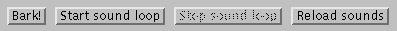 methods as follows:public void stop() { //If one-time sound were long, we'd stop it here, too. //looping is a boolean instance variable that's initially //false. It's set to true when the "Start sound loop" button //is clicked and to false when the "Stop sound loop" or "Reload //sounds" button is clicked. if (looping) { loopClip.stop(); //Stop the sound loop. } } public void start() { if (looping) { loopClip.loop(); //Restart the sound loop. } }The SoundExample applet features three classes: