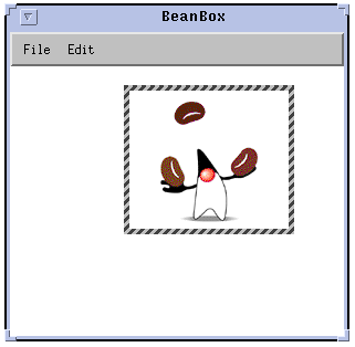 Now, placing the cursor anywhere in the BeanBox will cause a Juggler Bean to be inserted in the design form. The highlighted box surrounding the Juggler indicates the Juggler is the currently selected bean.