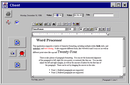 The form, or client window, represents the target application under construction and is presented, during design, as it will appear when it runs independently of the builder program.