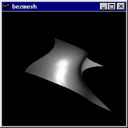 This program renders a lighted, filled Bezier surface, using two-dimensional evaluators. Source code: bezmesh.c. |