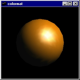 After initialization, the program will be in ColorMaterial mode. Interaction: pressing the mouse buttons will change the diffuse reflection values. Source code: colormat.c. |