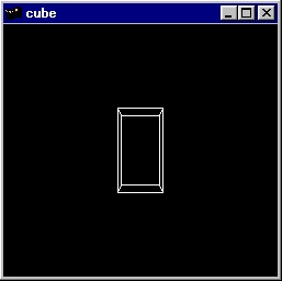 This program demonstrates a single modeling transformation, glScalef() and a single viewing transformation, gluLookAt(). A wireframe box is rendered. Source code: cube.c. |