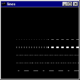 This program demonstrates geometric primitives and their attributes. Source code: lines.c. |