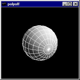 This program demonstrates polygon offset to draw a shaded polygon and its wireframe counterpart without ugly visual artifacts ("stitching"). Source code: polyoff.c. |