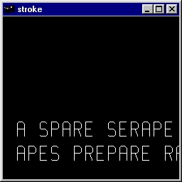 This program demonstrates some characters of a stroke (vector) font. The characters are represented by display lists, which are given numbers which correspond to the ASCII values of the characters. Use of glCallLists() is demonstrated. Source code: stroke.c. |