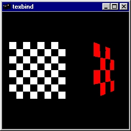 This program demonstrates using glBindTexture() by creating and managing two textures. Source code: texbind.c. |