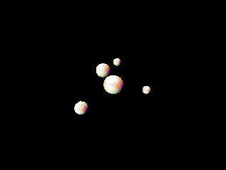 Trois sphères et trois source de lumière ponstuelle qui tourne autour d'une plus grosse sphère.