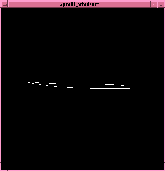 Ce programme genere un flotteur de planche a voile à partir de quelques parametres techniques tels que le maitre bau ,la longueur ... la technique utilisée pour arriver à construire un objet en 3D d'environ 5000 facettes et 20000 aretes est de créer d'abord 3 vues planes selon un plan de coupe,un plan de profil et une vue de dessus,en utilisant des courbes de Bezier .Ces courbes mathématiques qui delimitent la forme de la planche sont créées à partir de points calculés par le programme en fonction d'un fichier de configuration créé par l'utilisateur.
