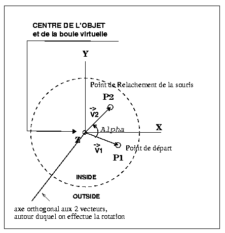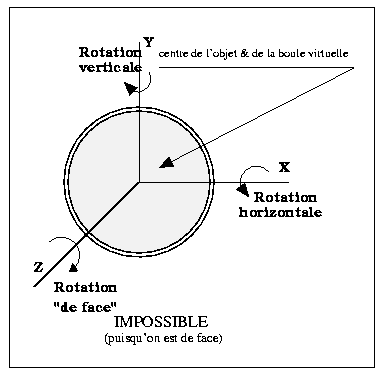 On effectuera une rotation à la souris, aidé du principe de la boule virtuelle qui est le suivant :