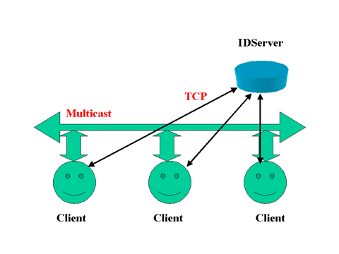 Les différentes classes réalisées sont: ![]() Pour pouvoir converser entre eux, les différents clients doivent pouvoir être identifiés de façon unique. L'IDServer est une mini base de donnée des identifiants disponibles. Lors de son lancement, le client émet une requête vers l'IDServer, afin d'obtenir un identifiant unique. Une fois celui ci obtenu, le client peut émettre sur le canal multicast sans risque de se voir confondre avec un autre client. Lors de sa déconnection, le client doit indiquer à l'IDServer qu'il quitte la partie et que par conséquent son identifiant pourra par la suite être utilisé par un autre client. Durant la période de communication "normale" du client, c.a.d