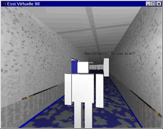 Ces objets ne font pas partie de l'arbre BSP et donc les facettes qui les constituent ne sont pas triées à l'affichage. Ceci implique l'utilisation d'une autre méthode pour pouvoir afficher correctement ces objets à l'écran. Cette méthode est celle du Z-Buffer. Le Z-Buffer est un tableau dont chaque case correspond à un pixel de l'image. Dans chacune de ces cases se trouve la distance entre la facette affichée et la camera. Cette distance sera utilisée pour déterminer si un objet est visible ou pas. Lorsque l'on affiche la scène définie par l'arbre BSP on remplit chaque case du tableau par cette distance. Après avoir effectué cette opération, on affiche les facettes correspondant aux objets représentant les différents utilisateurs. Les pixels des facettes de ces objets ne seront pas affichés à l'écran si la distance entre eux et la caméra est plus grande que celle déjà placée dans le Z-Buffer. Cette opération est effectuée de manière efficace par openGL, pour peu que l'on ait une carte accélératrice 3D. III. Détection de Collision. Première approche Solution Adoptée
