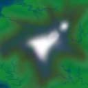 A terrain texture image texture mapped to a mountain-shaped elevation grid. |
