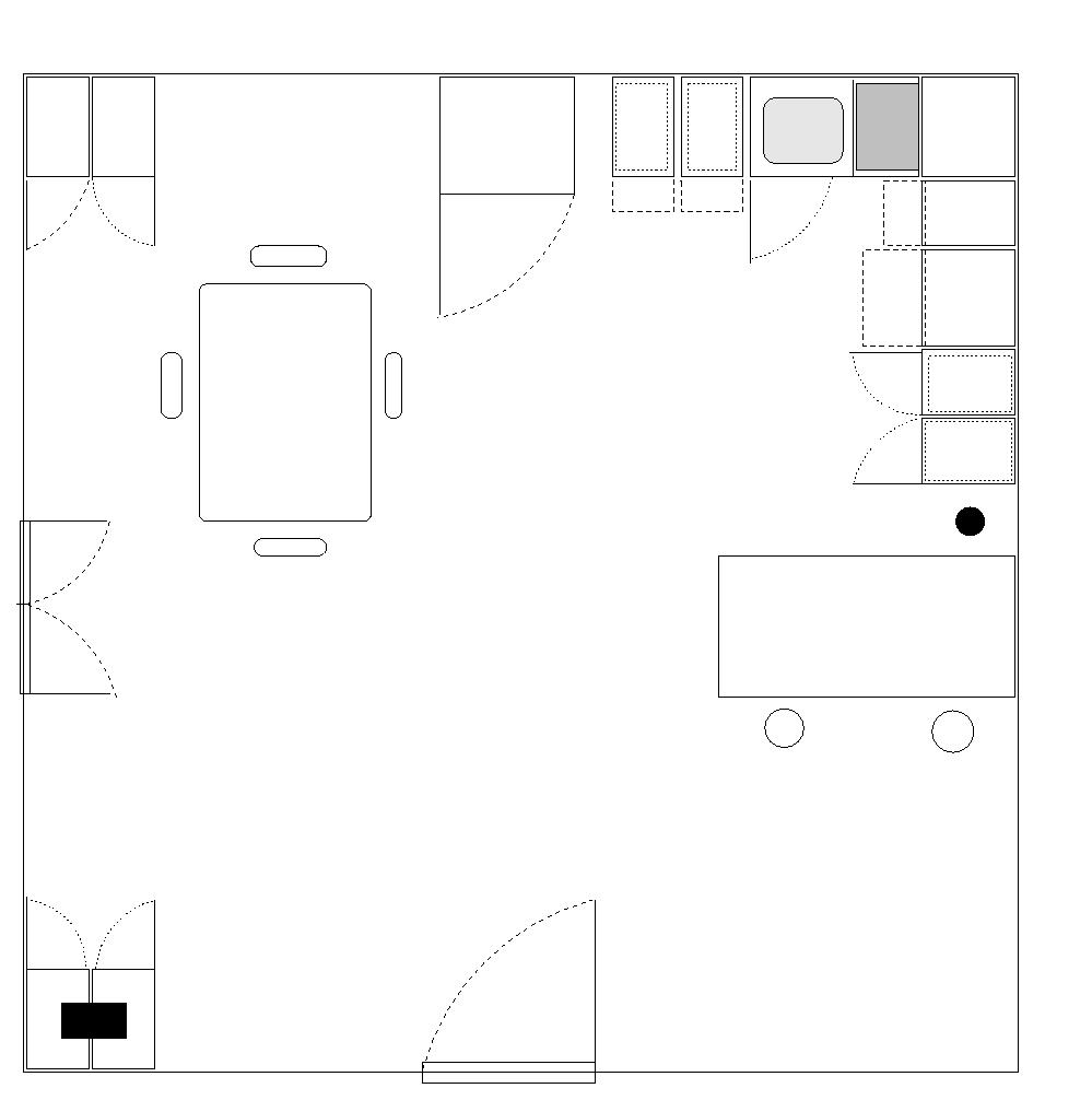 Il nous est demandé de réaliser une cuisine rectangulaire, aménagée avec les éléments habituels d’une cuisine. Cette réalisation a pour but de faciliter le placement des objets dans l’espace et d’avoir une meilleur vision des ouvertures (placards, porte, fenêtres, …).