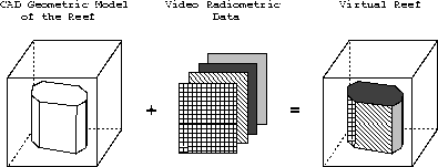 The goal of the project is thus to create a real-time walk-around system incorporating real underwater imagery. We expect that this will bring a better understanding of the marine biology of the micro-ecosystem for the biologists while providing a demand-driven application for engineering research into VR systems. Off-the-shelf VR technology is not suitable, as the fundamental premise of the project is the visualization of ``what is really there'' rather than the creation of a synthetic world either ab initio or as the result of computer simulation. Nor is the project strictly of the ``3-D reconstruction from a sequence of (stereo) images'' variety [4,21,12,20] as the structural geometric information is already available in the form of CAD models of the artificial reefs. The challenge is to combine the geometry and the photometry by mapping the images onto the CAD model [17] (sometimes refered to as ``augmented virtuality'') and then to provide user-driven exploration of the composite artificial yet realistic world.