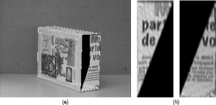 Figure 10(a) shows the Z-buffer mapping in progress on the end panel of the box, and 10(b) the two triangular textures extracted from the image of the box.