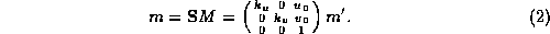 Combining eqns. (1,2) gives the relation between 3-D point M and image point m